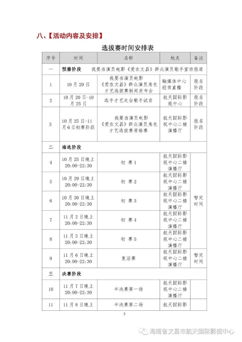 选拔赛地点:文昌市航天国际影视中心二楼演播厅