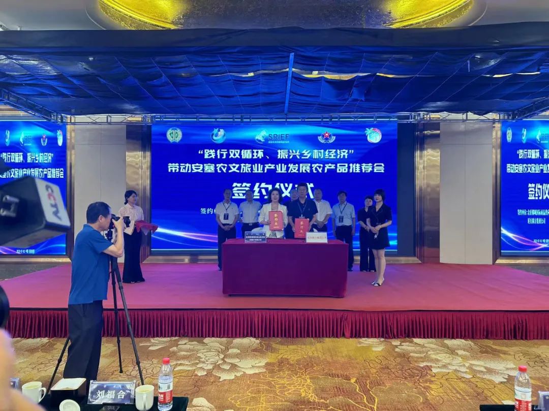 金盾椰城国际商品供应链(海南)有限公司“践行双循环、振兴乡村经济”主旨大会于2023年7月2日在安塞紫金国际大酒店举行,“带动安塞农文旅业产业发展农产品推荐会”。中国退役军人就业创业服务促进会、创业培训服务专委会副主任、海南省文昌市航天国际影视中心主任张伟,国家有关部门原有关领导、经济学家及供应链公司所有企业客商近400人参加了此次会议。